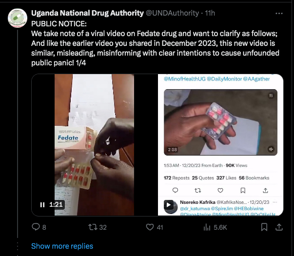 National drug Authority reaffirmed in public notice on Friday that Facade is a fully registered and approved drug having undergone all required regulatory processes. The NDA Statement aims to reassure the public of the drug safety and and efficacy despite the misleading claims in the video.